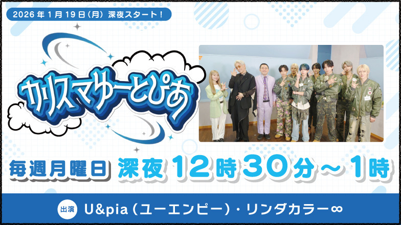 • 2025.11.17 リリース 8人組ダンス&ボーカルグループ U&pia初冠番組!お笑いトリオ・リンダカラー∞と、来年1月よりレギュラー番組の放送開始が決定!