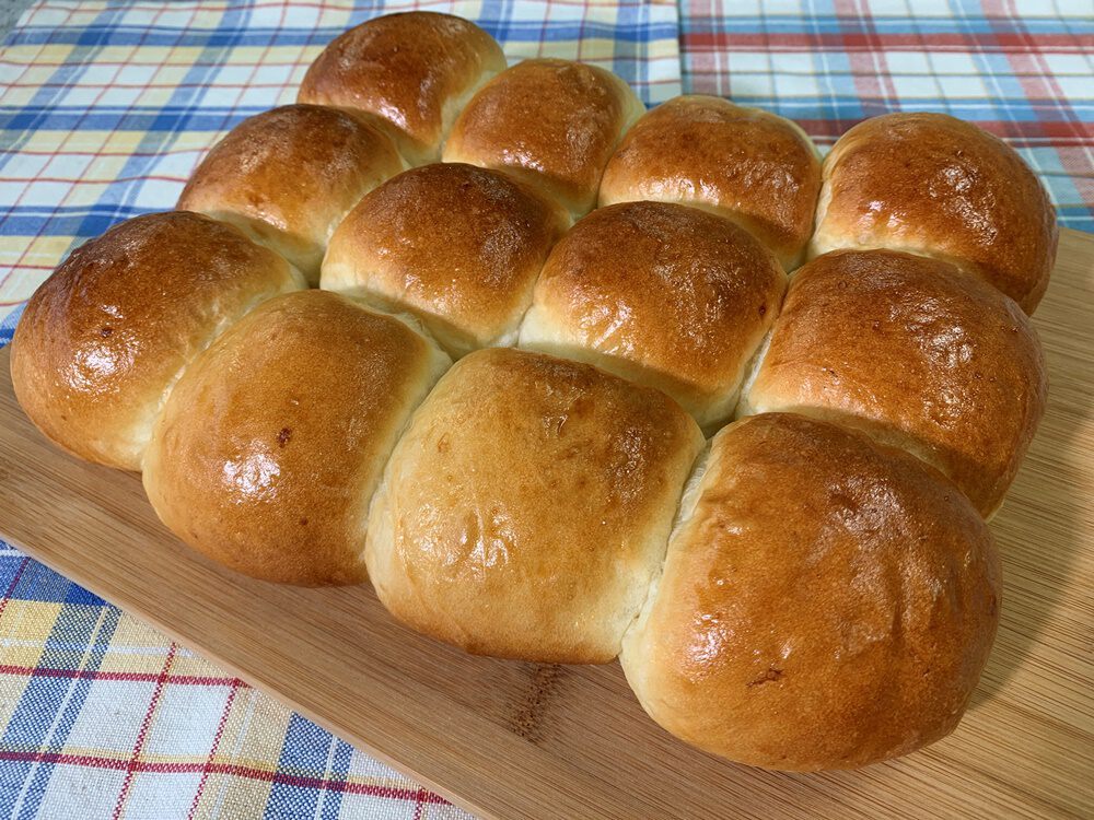 (1)基本の生地、1次発酵が終わったら、16等分に分割をしてベンチタイムをとる。