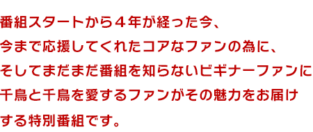 祝・5年目突入SP「いろはに千鳥ファンクラブ」 祝・5年目突入SP「いろはに千鳥ファンクラブ」 【放送日時】 2017年12月28日(木)19時〜19時55分